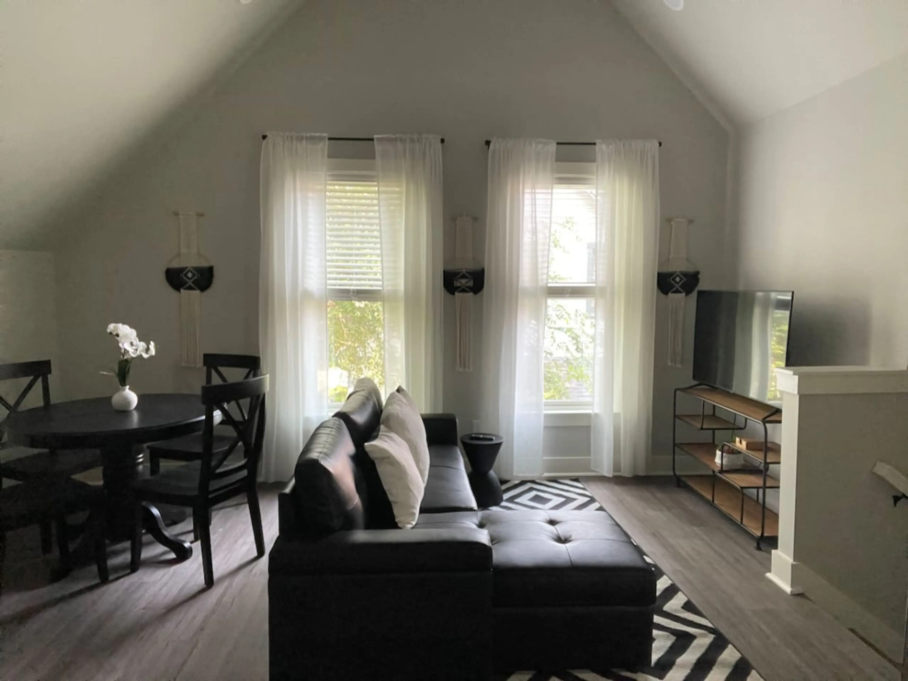 1550 Sq ft Carriage House Fletcher Place Home completely renovated this year with all brand new modern decor amenities. Sleeps 7 Comfortably with 2 br, 2 Queen Beds w/ Flat screens in each room in the house. All beds have a new moemory foam mattresses. Modern easy to pull out sofa sleeper in the o...